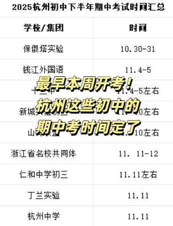 最早本周就开始期中考虽然这个学期时间较长,大部分学校还没到期中考的时间,但是很多学校对考试时间已做了安排,小升君为大家整理了杭城部分学校或集团考试安排(数据介来源于网络,如有错误欢迎留言指正):初中校排名多少位才能上重高?由于每年存在较多的变量,按照现有的数字以及往年的升学率来大致估算,若是在十三中要拿前三的分配名额,起码要在年级10.3%,排名113名左右,总分在560-570之间;拿前十三,要在年级34.96%,排