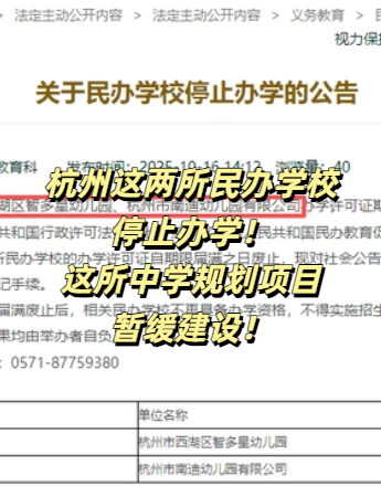杭州这两所民办学校停止办学!这所中学规划项目暂缓建设!