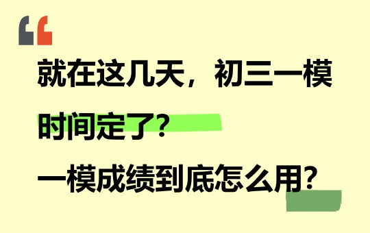 就在这几天,初三一模时间定了?一模成绩到底怎么用?